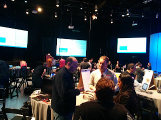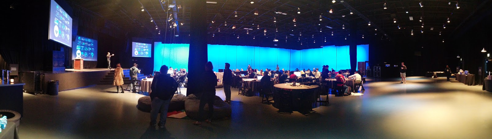 May 28, 2016 | Damon | Leave a comment So this past weekend I went to Seattle to participate in the first ever Holographic Hackathon. This event sponsored mainly by Microsoft gave a select number of lucky individuals the opportunity to work with the Microsoft HoloLens device. As an organizer of hackathons for the past few years I was beyond excited to be a participant for a change. True this weekend was not the first chance for me to be around the device, we had several at our AEC Hackathon last month in SoCal, but it was the first time I had an uninterrupted weekend dedicated to developing for it. For those that are not familiar with this augmented reality headset, see the video below from Microsoft’s Build 2016 keynote. Hackathon Day #1 The Holographic Hackathon was held at Fremont Studios just north of downtown Seattle. The venue was a super cool open space with blue lights and black curtains along the walls. The crowd was an interesting mix of software & Unity developers, audio engineers, artists, and non-technical professionals from various industries. I was pleasantly surprised to see several folks from the AEC (Architecture, Engineering, & Construction) space present and over a dozen others that have participated in either the VR or AEC related hackathons I help organize in Seattle. This diversity of skill sets and knowledge excited me more about the weekend. The Friday evening started off with a networking mixer and then with an introduction from the Microsoft HoloLens team, Seattle VR, and Windows Holographic User Group Redmond (WinHUGR) Meetup groups. They laid out the agenda for the weekend, shared with us some great resources to help our hacking, and then opened it up to team formations. People wrote their ideas on a huge paper tablet and either stood at their table or walked around looking for team members or teams to join. While I came with a team of three, none of us are pro Unity developers (the main developing environment for HoloLens) so we actively sought someone who could assist our project. After giving the pitch to a few visitors to our table, we finally nabbed a Unity developer named Nicholas Abel that was excited to help us with our construction related application. After teams formed, HoloLens were distributed two per table and wasting no time we setup and begin holo-hacking away. Our Application The goal of our team’s weekend project was to create a HoloLens version of a building application my tech team at IDEAbuilder has developed for VR (video) and browser based web3D using the Kinect (Wired article). This application uses digital fabrication ready 3D models of building components to 1) give the user/general contractor the ability to place these items in a scene to build a structure and 2) provide them a price of our material and machine time costs for fabrication at our factory. Think of the application like a Lego builder app but with pricing information and other data for building real houses. Getting Started As stated, I am not a Unity developer. Sure I can do basic things in the game engine but as a open standards web guy with a focus on real world industries, it is not my tool of choice. While the rest of my team got hacking away at the project, I began building up my knowledge of the tool for HoloLens development via the tutorials at Microsoft’s Holographic Academy website. Hands down this site is among the best resources I have ever accessed for learning anything tech related online. The video and text tutorials were very clear and gave step by step instructions on how to develop for the HoloLens. These tutorials are so well put together that I feel anyone, even if completely new to Unity, can get up and running with development for the device in no time. I was so excited about the progress I was making with the device that time flew by. Knowing it was going to be a long weekend, I called it quits a little after midnight. Day #2 I arrived Saturday morning right after the beginning of the day’s presentations that were going to be by various members of the Microsoft HoloLens team. While I was interested in what the presenters had to share, I was more excited about getting back into Unity for more HoloLens development. Wait, did I just say I was excited about getting back into Unity development?!? In all the years of knowing about Unity (David H. is a friend) and times I have HAD to use it I have never been excited about doing so, yet now I was. Seems I have the fever for HoloLens development and I will learn whatever tool I must to do so. By mid-day I had created a few different HoloLens examples and even had time to show some others how to build for it as well while the rest of my team cranked away at our project. One application I made showed the digital fabrication model of a home IDEAbuilder helped build in Tahoe AR’ed into the room. Seeing this model in the HoloLens impressed the hell out of me as it is a lot of polygons (750,000+) to render in any mobile AR device. While not accurate in its scale, the model still took up a huge amount of the venue’s space. The video below of this app was recorded with the HoloLens’ video record feature. I continued my HoloLens education for the rest of the day and night when not helping my team members with items related to finishing our project. I was having so much fun learning and building that 8:00 AM Sunday morning snuck up on me. This is when I realized I should probably nap for a few hours since I pulled an all-nighter and I face planted on a big super comfy beanbag chair. Day #3 I awoke a couple hours later to jump back into it with my team. The energy of the room was intense as everyone was getting their projects and presentations ready for the hackathon deadline. At little after 1:00 PM the presentations started and what a variety of projects they were. There were close to 20 teams and HoloLens apps for medical, storytelling, shopping, and more. There were even a few AEC related apps by AEC